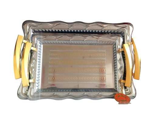 سینی استیل 3عددی دسته دار طلایی .جنس اورجینال و درجه یک .ضد زنگ